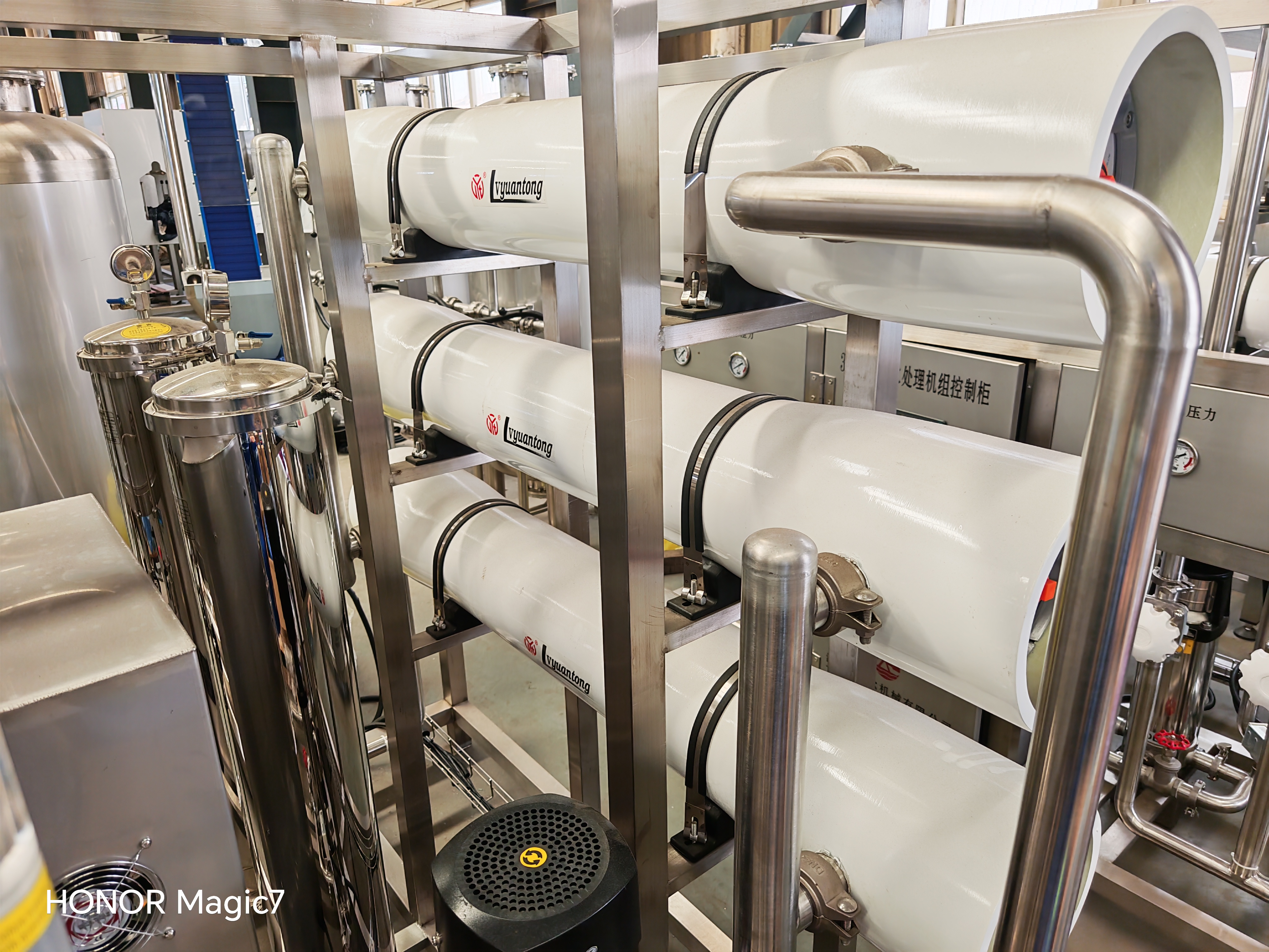 反滲透系統(tǒng)主要設(shè)備有石英砂過濾器,活性炭過濾器,鈉離子交換器,RO(反滲透),紫外線消毒器,精密過濾器,臭氧發(fā)生器,水箱等。處理能力為0.5-50噸/小時。它可以有效地去除泥濘的有機物,鐵,錳和氧化物,過濾懸浮物,膠體,微生物殘留的氧和水中的一些重金屬離子,降低水的硬度,使各種規(guī)格的水質(zhì)完全符合國家淡水標準的淡水。
